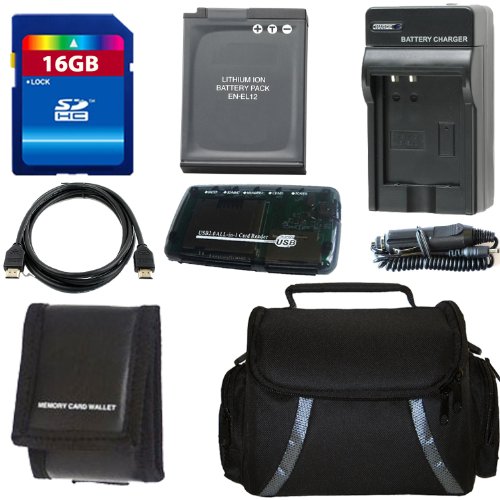 Nikon Coolpix S1000pj, S1100pj, S1200pj Digital Camera Accessory Kit Includes 16GB SDHC Memory + Memory Reader + Memory Card Wallet + Replacement Battery Charger + Replacement Battery + Camera Case + HDMI Cable for Sale - Review & Buy at Cheap Price